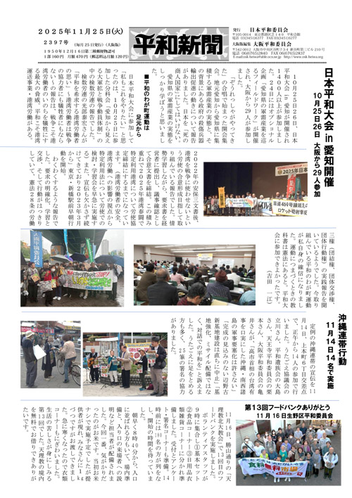 ■10月25日26日、日本平和大会に1400人以上が集う(平和新聞11月号より)