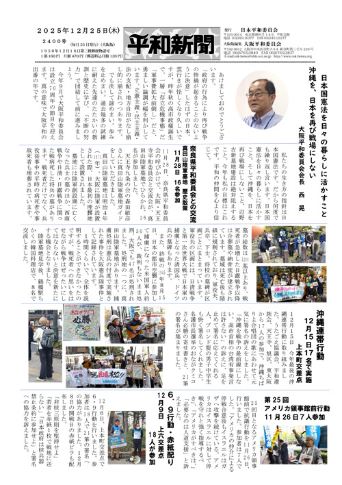 今年9月で大阪平和委員会は設立70周年の節目を迎えます。真の意味で大阪平和の出番の年です。