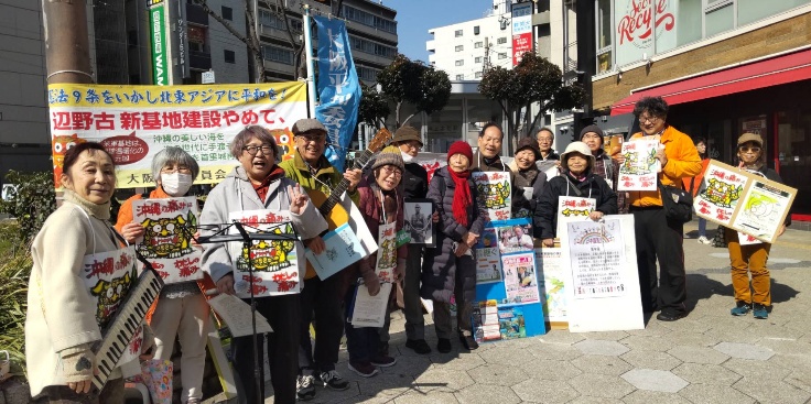 終戦記念日の9月16日、上本町6丁目交差点で、正午から沖縄連帯行動の宣伝を行いました。