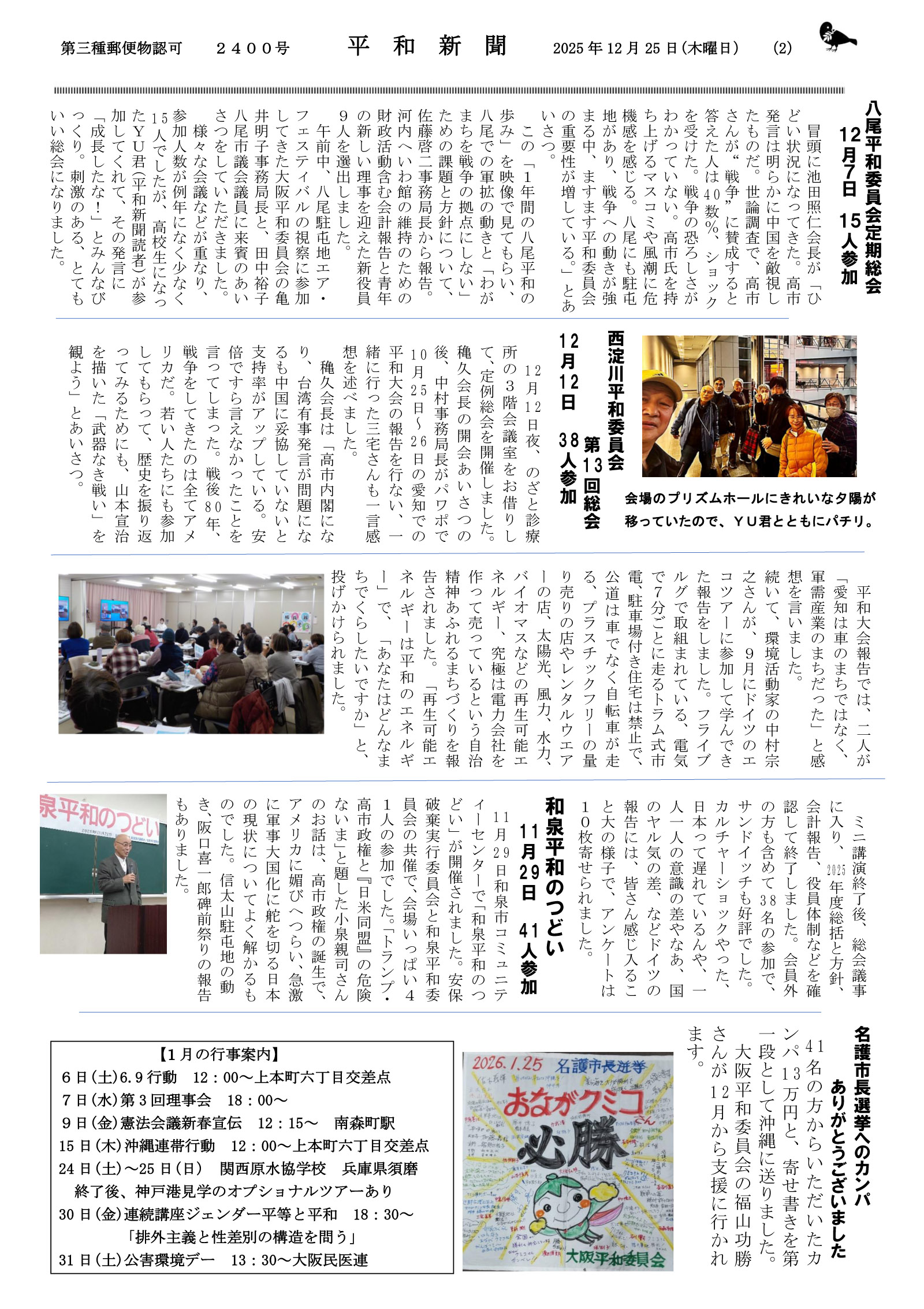 日本平和大会を成功させよう!RYU裁判を支援しよう!大阪平和委員会を強く大きくして、2026年の70周年を迎えようと締めくくりました。
