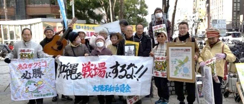 終戦記念日の9月16日、上本町6丁目交差点で、正午から沖縄連帯行動の宣伝を行いました。