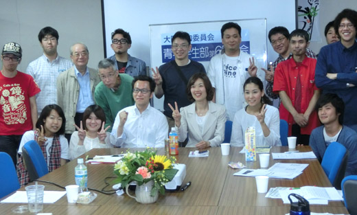 総会では、山本訓子さんが写真を使って4月25日からのNPT再検討会議NY行動などこの1年間の活動について報告。それに各イベント参加者が追加コメントをする体裁をとりました。また、最後に、来年の参院選大阪選挙区予定候補の日本共産党わたなべ結さん(青年学生部会員)が記念講演を行いました。
