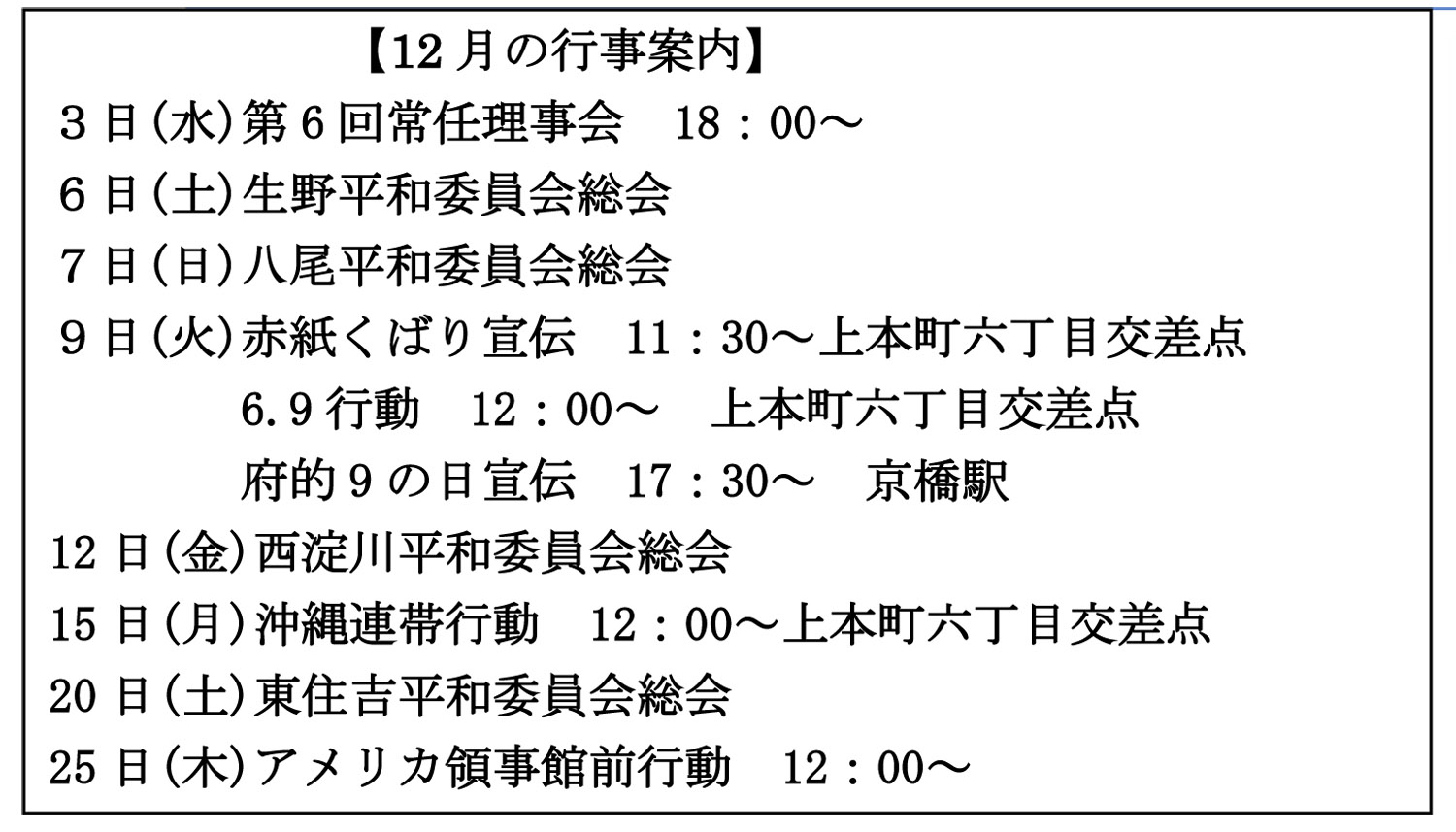 今こそ、平和の出番。旺盛な運動を進めるためには、力強い平和の仲間が必要です。「一歩前進二歩後退」の現状から1日も早く脱し、反転攻勢の年にしようではありませんか。